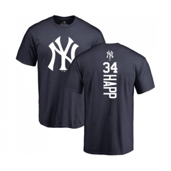 Baseball New York Yankees #34 J.A. Happ Navy Blue Backer T-Shirt
