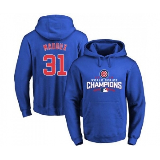 Cubs #31 Greg Maddux Blue 2016 World Series Champions Pullover MLB Hoodie