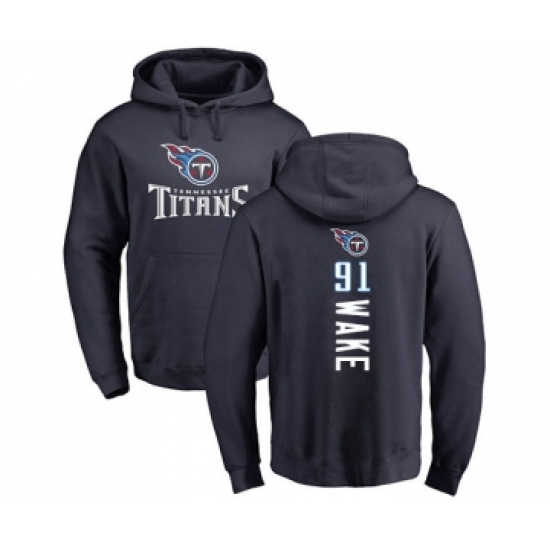 >Football Tennessee Titans #91 Cameron Wake Navy Blue Backer Pullover Hoodie