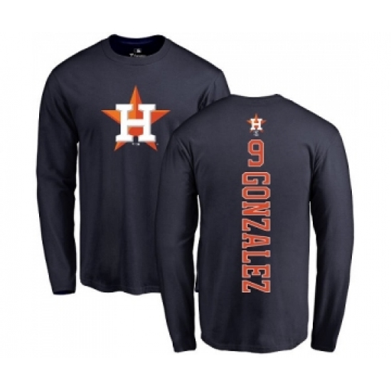 MLB Nike Houston Astros #9 Marwin Gonzalez Navy Blue Backer Long Sleeve T-Shirt