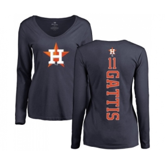 MLB Women's Nike Houston Astros #11 Evan Gattis Navy Blue Backer Long Sleeve T-Shirt