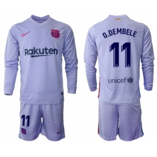 >Men 2021-2022 Club Barcelona Second away purple Long Sleeve 11 Soccer Jersey