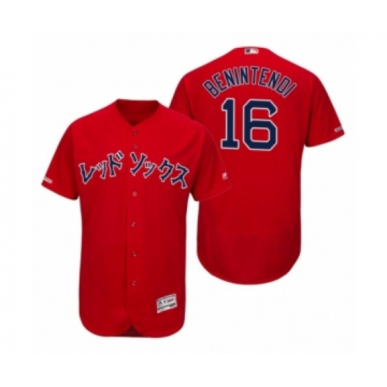 >Men's 2019 Boston Red Sox #16 Asian Heritage Month Andrew Benintendi Red Japanese Flex Base Jersey