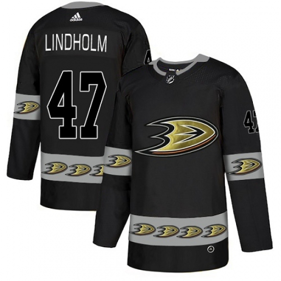 >Men's Adidas Anaheim Ducks #47 Hampus Lindholm Premier Black Team Logo Fashion NHL Jersey