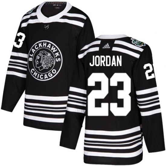 >Men's Adidas Chicago Blackhawks #23 Michael Jordan Authentic Black 2019 Winter Classic NHL Jersey