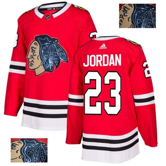 Men's Adidas Chicago Blackhawks #23 Michael Jordan Authentic Red Fashion Gold NHL Jersey