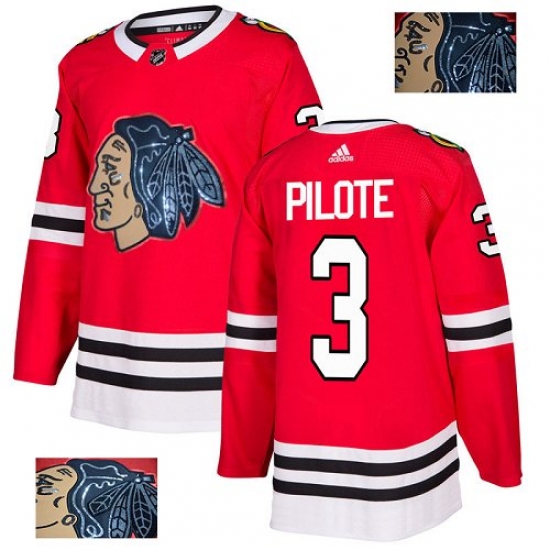 Men's Adidas Chicago Blackhawks #3 Pierre Pilote Authentic Red Fashion Gold NHL Jersey