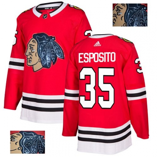 Men's Adidas Chicago Blackhawks #35 Tony Esposito Authentic Red Fashion Gold NHL Jersey
