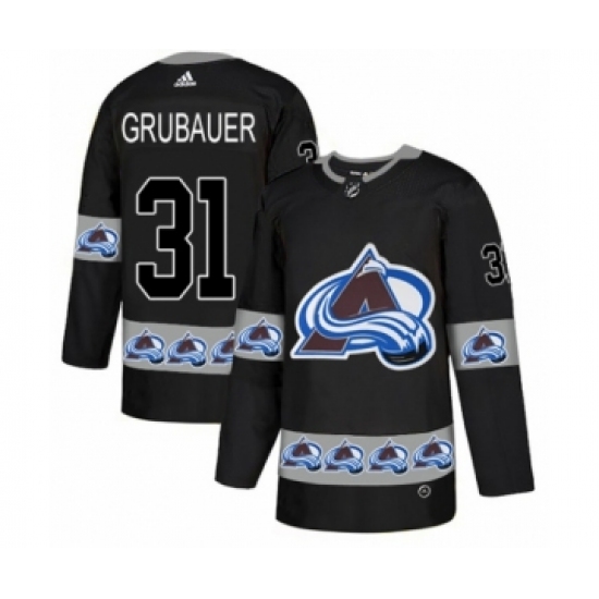 >Men's Adidas Colorado Avalanche #31 Philipp Grubauer Authentic Black Team Logo Fashion NHL Jersey