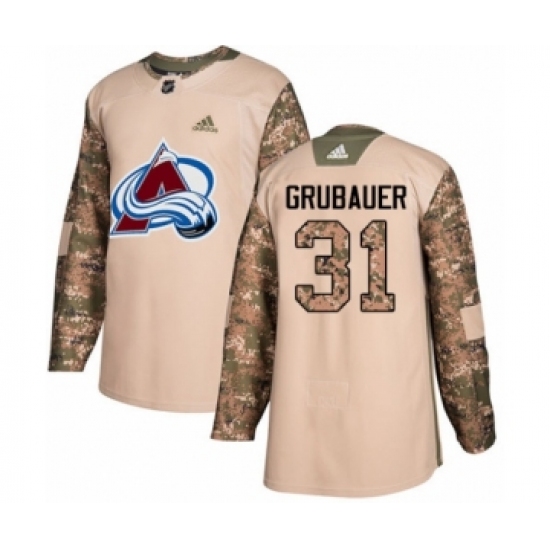 >Men's Adidas Colorado Avalanche #31 Philipp Grubauer Authentic Camo Veterans Day Practice NHL Jersey