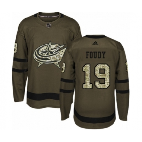 Men's Adidas Columbus Blue Jackets #19 Liam Foudy Authentic Green Salute to Service NHL Jersey