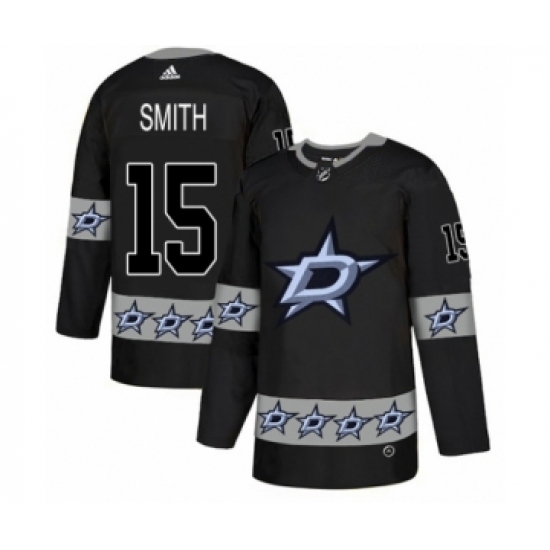 Men's Adidas Dallas Stars #15 Bobby Smith Authentic Black Team Logo Fashion NHL Jersey