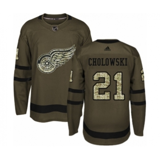 Men's Adidas Detroit Red Wings #21 Dennis Cholowski Authentic Green Salute to Service NHL Jersey