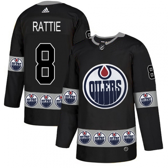 Men's Adidas Edmonton Oilers #8 Ty Rattie Authentic Black Team Logo Fashion NHL Jersey