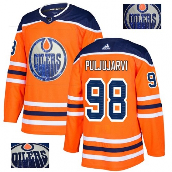 Men's Adidas Edmonton Oilers #98 Jesse Puljujarvi Authentic Orange Fashion Gold NHL Jersey