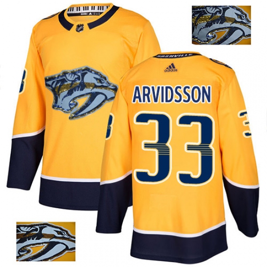 >Men's Adidas Nashville Predators #33 Viktor Arvidsson Authentic Gold Fashion Gold NHL Jersey