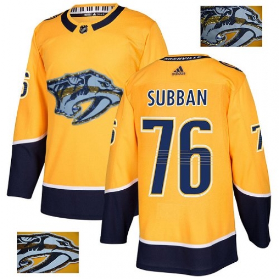>Men's Adidas Nashville Predators #76 P.K Subban Authentic Gold Fashion Gold NHL Jersey
