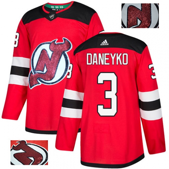 Men's Adidas New Jersey Devils #3 Ken Daneyko Authentic Red Fashion Gold NHL Jersey