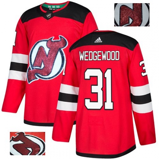 Men's Adidas New Jersey Devils #31 Scott Wedgewood Authentic Red Fashion Gold NHL Jersey