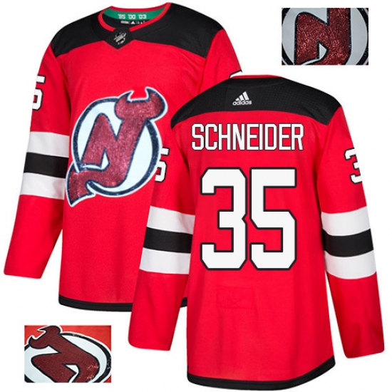 >Men's Adidas New Jersey Devils #35 Cory Schneider Authentic Red Fashion Gold NHL Jersey