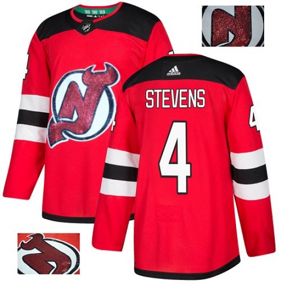 Men's Adidas New Jersey Devils #4 Scott Stevens Authentic Red Fashion Gold NHL Jersey