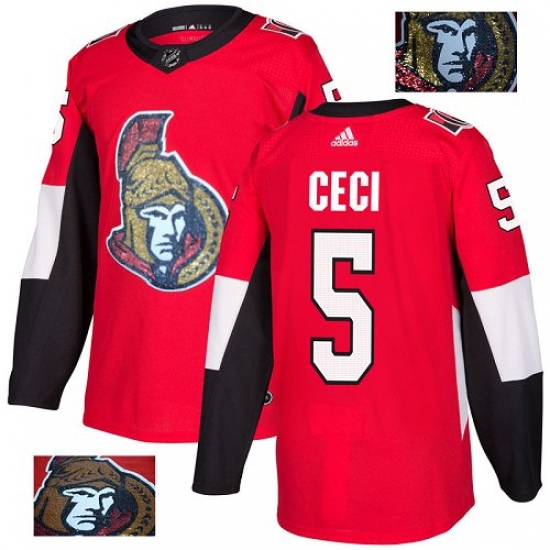 Men's Adidas Ottawa Senators #5 Cody Ceci Authentic Red Fashion Gold NHL Jersey