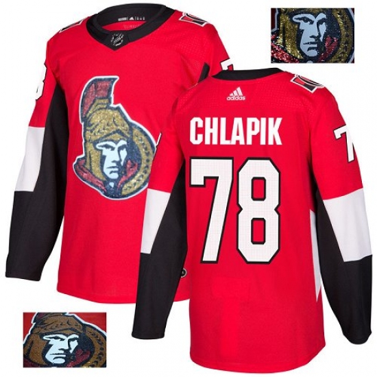Men's Adidas Ottawa Senators #78 Filip Chlapik Authentic Red Fashion Gold NHL Jersey