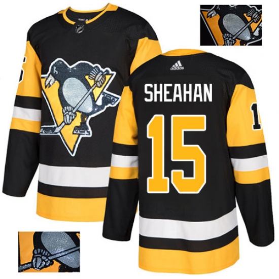 Men's Adidas Pittsburgh Penguins #15 Riley Sheahan Authentic Black Team Logo Fashion NHL Jersey