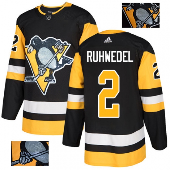 Men's Adidas Pittsburgh Penguins #2 Chad Ruhwedel Authentic Black Fashion Gold NHL Jersey