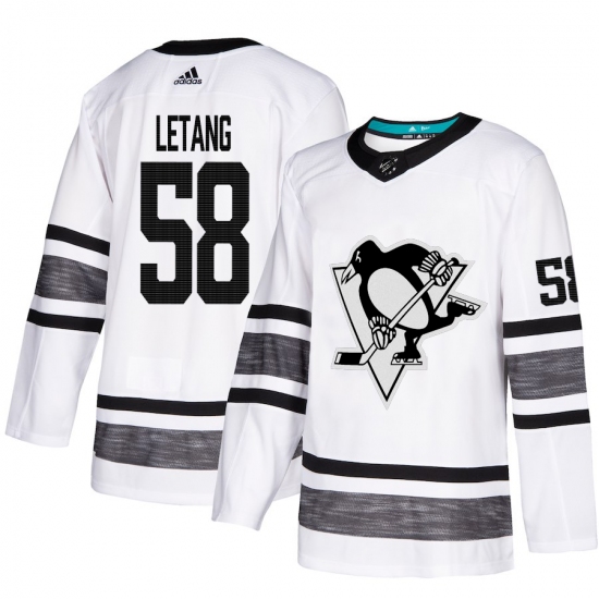 >Men's Adidas Pittsburgh Penguins #58 Kris Letang White 2019 All-Star Game Parley Authentic Stitched NHL Jersey