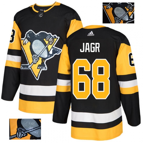 >Men's Adidas Pittsburgh Penguins #68 Jaromir Jagr Authentic Black Fashion Gold NHL Jersey