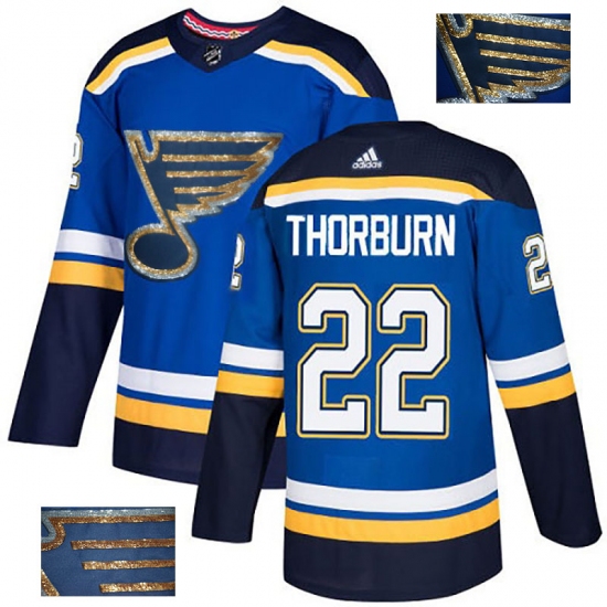 Men's Adidas St. Louis Blues #22 Chris Thorburn Authentic Royal Blue Fashion Gold NHL Jersey