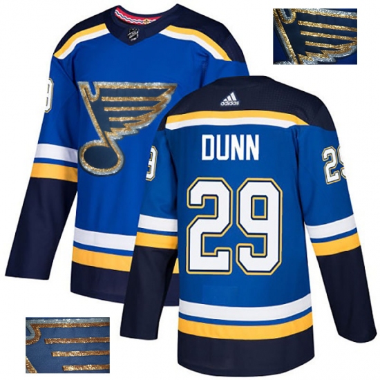 >Men's Adidas St. Louis Blues #29 Vince Dunn Authentic Royal Blue Fashion Gold NHL Jersey