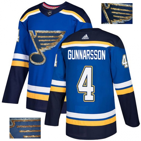Men's Adidas St. Louis Blues #4 Carl Gunnarsson Authentic Royal Blue Fashion Gold NHL Jersey