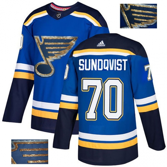 Men's Adidas St. Louis Blues #70 Oskar Sundqvist Authentic Royal Blue Fashion Gold NHL Jersey