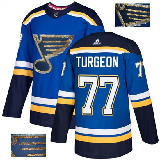 Men's Adidas St. Louis Blues #77 Pierre Turgeon Authentic Royal Blue Fashion Gold NHL Jersey