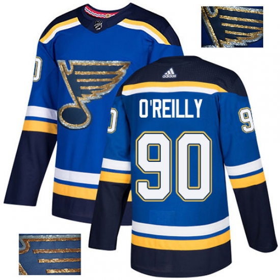 Men's Adidas St. Louis Blues #90 Ryan O'Reilly Authentic Royal Blue Fashion Gold NHL Jersey