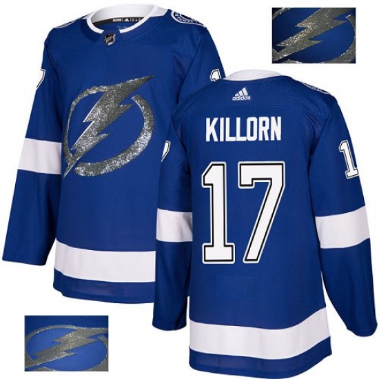 >Men's Adidas Tampa Bay Lightning #17 Alex Killorn Authentic Royal Blue Fashion Gold NHL Jersey