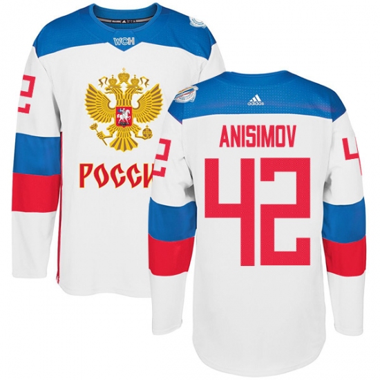 Home>NHL>Team Russia>Artem Anisimov>Men's Adidas Team Russia #42 Artem Anisimov Authentic White Home 2016 World Cup of Hockey Jersey