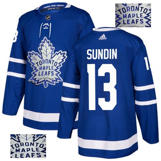 Men's Adidas Toronto Maple Leafs #13 Mats Sundin Authentic Royal Blue Fashion Gold NHL Jersey