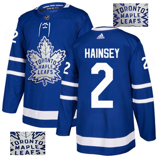 Men's Adidas Toronto Maple Leafs #2 Ron Hainsey Authentic Royal Blue Fashion Gold NHL Jersey