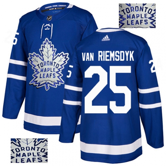 >Men's Adidas Toronto Maple Leafs #25 James Van Riemsdyk Authentic Royal Blue Fashion Gold NHL Jersey