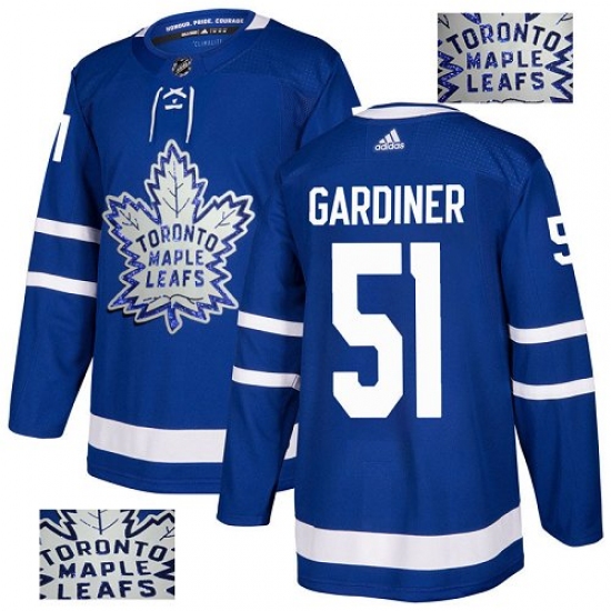 >Men's Adidas Toronto Maple Leafs #51 Jake Gardiner Authentic Royal Blue Fashion Gold NHL Jersey