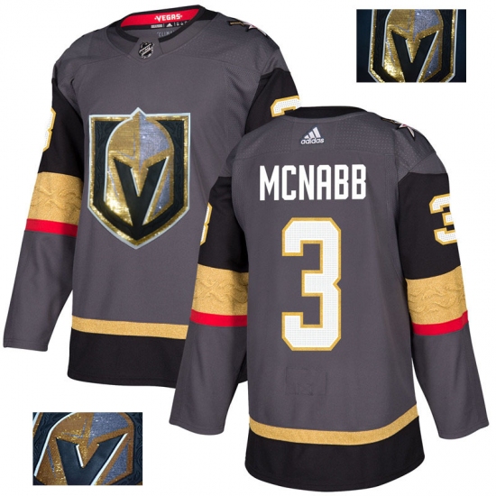 Men's Adidas Vegas Golden Knights #3 Brayden McNabb Authentic Gray Fashion Gold NHL Jersey