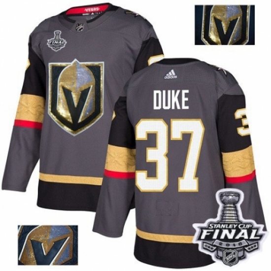 >Men's Adidas Vegas Golden Knights #37 Reid Duke Authentic Gray Fashion Gold 2018 Stanley Cup Final NHL Jersey