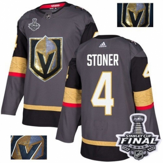 Men's Adidas Vegas Golden Knights #4 Clayton Stoner Premier Gray Home 2018 Stanley Cup Final NHL Jersey