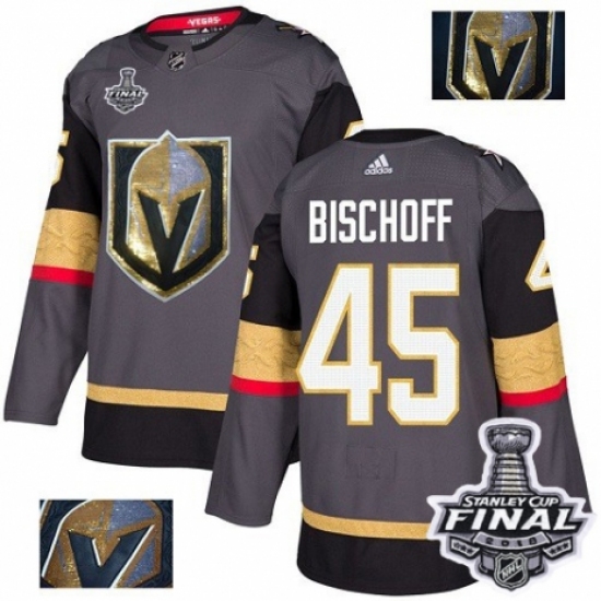 >Men's Adidas Vegas Golden Knights #45 Jake Bischoff Authentic Gray Fashion Gold 2018 Stanley Cup Final NHL Jersey