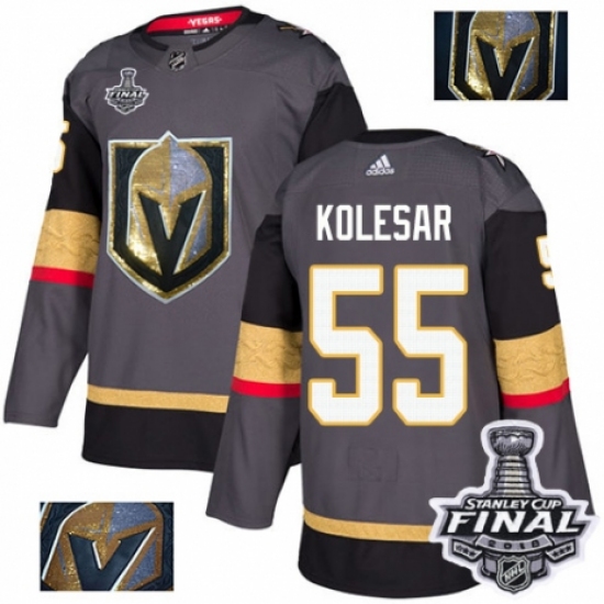 >Men's Adidas Vegas Golden Knights #55 Keegan Kolesar Authentic Gray Fashion Gold 2018 Stanley Cup Final NHL Jersey