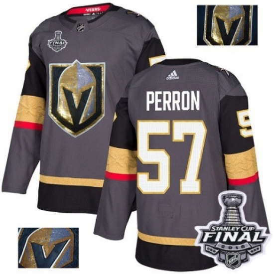 Men's Adidas Vegas Golden Knights #57 David Perron Authentic Gray Fashion Gold 2018 Stanley Cup Final NHL Jersey