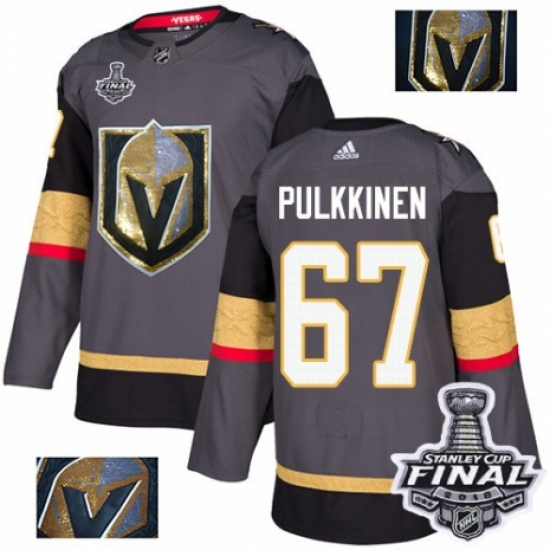 Men's Adidas Vegas Golden Knights #67 Teemu Pulkkinen Authentic Gray Home 2018 Stanley Cup Final NHL Jersey